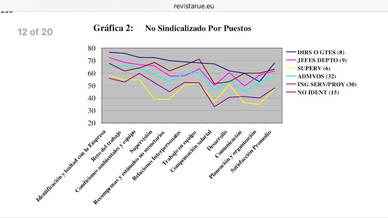 La gráfica 2, (imagen 3) revela que el personal con un nivel de gerencia o directivo la percepción que tiene hacia la empresa es diferente que al resto del personal, lo que muestra que existe una brecha entre los niveles superiores y los inferiores.