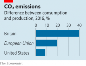 Hasta el momento, los objetivos relacionados con lograr emisiones cero solo han sido puestos en marcha en aquellas economías que representan un sexto del PIB mundial, situación que contrasta de sobremanera con la cantidad de emisiones relacionada con los flujos comerciales, responsables de un cuarto de las emisiones globales de efecto invernadero. Es con base a este panorama que resulta relevante tomar en cuenta la brecha existente entre el carbono que es producido y consumido, especialmente en aquellos países ricos que mantienen una dinámica vigorosa en el consumo de servicios y bienes manufacturados. Al usar mediciones basadas en la cantidad de importaciones de carbono, la cantidad de emisiones generadas por países como Gran Bretaña aumenta en dos quintas partes, las de Unión Europea en un quinto y las de Estados Unidos en una décima.