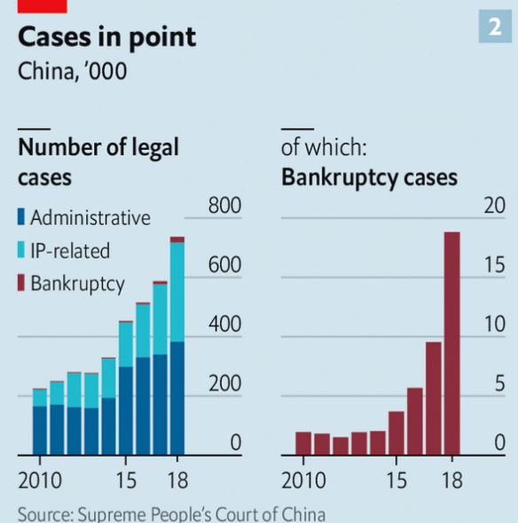 Cuando Xi habla de reforma de mercado, lo que quiere es orden, no justicia. La idea es definir los límites y las forma en que las empresas y las personas pueden trabajar. Si bien, Xi ha usado el sistema legal para atacar a los defensores de derechos humanos en Hong Kong, también ha supervisado una profesionalización parcial del sistema judicial y ha otorgado a los tribunales más autoridad en asuntos no políticos. Estos cambios han llevado a un aumento de demandas administrativas, las cuales se han duplicado. A su vez, los casos de quiebra se han multiplicado por diez, y tan solo el año pasado se aceptaron más de 480 mil procesos relacionados con propiedad intelectual, de los cuales 89% fueron ganados por demandantes extranjeros. En este sentido, debido a que los funcionarios locales solían ignorar las sentencias judiciales, el gobierno está desarrollando un sistema de “crédito social”. Los tribunales pueden colocar a las personas en listas negras de crédito, que de forma automatizada les impiden comprar un boleto de avión u obtener un préstamo, en 2018 unos 290 mil ejecutivos de empresas estaban en estas listas. Si bien, este sistema tiene un tinte distópico, muchos en China lo apoyan por ahora como una herramienta para sanear el entorno empresarial.