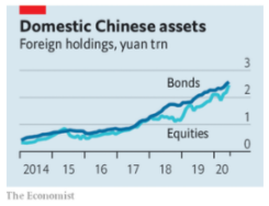 Debido a la necesidad de atraer capital extranjero por la previsible reducción de su superávit en cuenta corriente, China ha flexibilizado los términos para su ingreso; incluso está permitiendo que compañías occidentales tomen el mando de sus operaciones en el país asiático. También ha facilitado la compra y venta de activos, razón por la que The Economist señala que China será un enorme universo para la inversión y una nueva fuente de ingresos para los bancos de Wall Street.