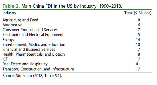 Por su parte, a pesar de que el número de inversiones chinas en Estados Unidos ha disminuido, el gigante asiático continúa haciendo grandes adquisiciones e inversiones a su contraparte norteamericana. En primer lugar, desde 2014, dos tercios del capital de riesgo chino son invertidos en compañías estadounidenses, especialmente en las empresas que se enfocan en: salud, farmacéuticas y biotecnología; servicios financieros y comerciales; electrónicos y equipo electrónico y TICs. Cabe mencionar, que los principales inversores de capital de riesgo chinos corresponden a entidades que con propiedad estatal.