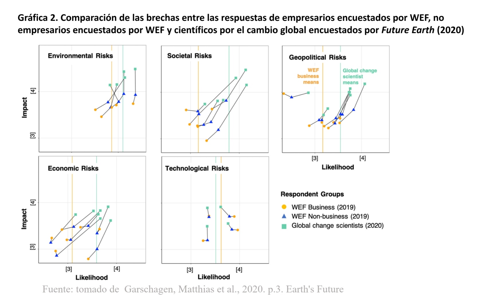Garschagen, Matthias et al [2020], "Too Big to Ignore: Global Risk Perception Gaps Between Scientists and Business Leaders", Earth's Future 12 de febrero, https://agupubs.onlinelibrary.wiley.com/doi/epdf/10.1029/2020EF001498