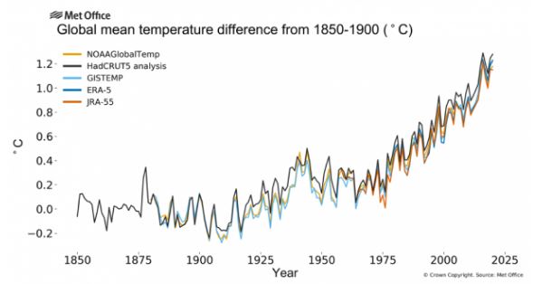 Por su parte, el Servicio Meteorológico de Japón coloca al 2020 como el tercer años más caluroso de la historia. La OMM estima que las diferencias con los datos de Japón son mínimas y se encuentran dentro del margen de error contemplado para calcular la temperatura media mundial.
