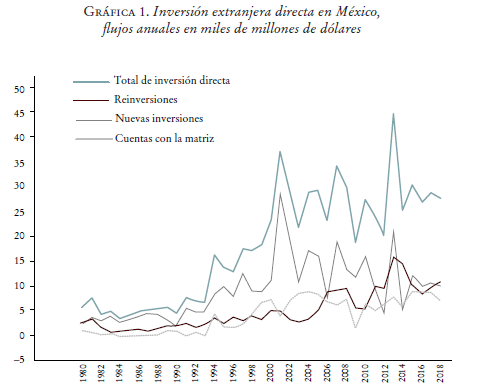 El coeficiente de inversión fija bruta cayó a 18.6% del PIB en el sexenio 1984-1989, apenas subió a 19.5% del PIB en el sexenio 1995-2000, alcanzando su punto más alto de 22.2% del PIB en el sexenio 2007-2012, para descender a 22% del PIB durante el último sexenio 2013-2018.