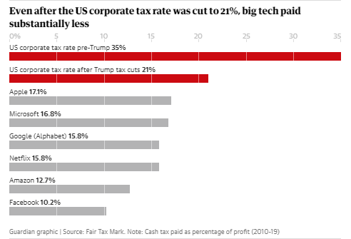 8. Entre 2012 y 2017, Google, Facebook, Apple y Microsoft, evadieron en Reino Unido 5 mil millones de libras esterlinas de impuestos corporativos.