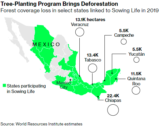 de Haldevang, Max [2021], "How Mexico’s Vast Tree-Planting Program Ended Up Encouraging Deforestation", Bloomberg, 8 de marzo, https://www.bloomberg.com/news/features/2021-03-08/a-tree-planting-progr...