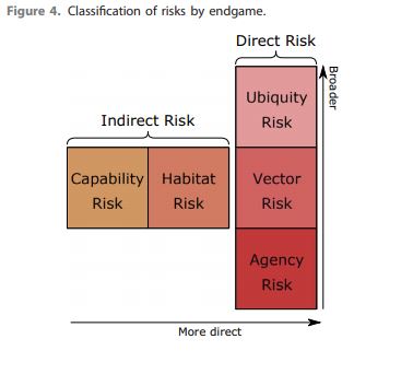 Sobre esta misma línea, con el fin de dirigir la investigación y la creación de políticas, los autores del artículo consideran pertinente explicar qué procesos provocarían esta extinción. En general los estudios se basan en las repercusiones de los astroides, las guerras nucleares y las pandemias diseñadas, pero en el presente artículo Cotto-Barat, Daniel y Sanberg muestran tres clasificaciones de riesgos. Y siguiendo la interrogante de cómo este tipo de divisiones podría influir en las políticas de riesgos, se identifican 3 etapas en la extinción en las que el ser humano podría intervenir. Para cada una de ellas se cuestiona la forma en que los individuos podrían ayudar a frenar el proceso.