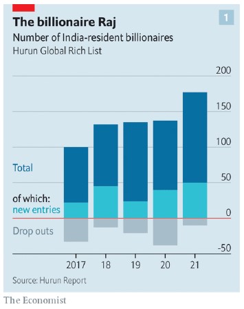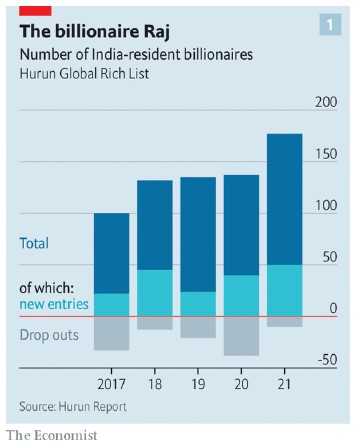 1. En 2020 India tiene 177 billonarios, 77 más que en 2017.