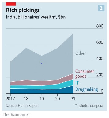 The Economist [2021], "A plutocratic makeover. Who are India's newest billionaires?", The Economist, London, 27 de marzo, https://www.economist.com/business/2021/03/27/who-are-indias-newest-bill...