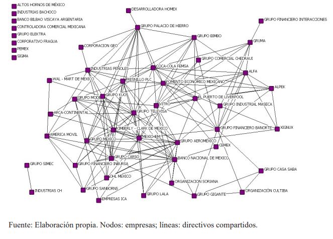 Con esto puede decirse que, las corporaciones mexicanas comparten directivos entre sus consejos de administración y por tanto constituyen una red cohesionada. Ésta se crea en el interior de la cápsula empresarial, pero también entre compañías de diversos grupos económicos o conglomerados. De hecho, las grandes empresas mexicanas no solo tienen de directores a miembros de la familia propietaria sino a otras familias. Aunado a esto, la conexión nacional entre estas élites traspasa las ciudades donde se sitúa la sede principal de las corporaciones. Un ejemplo de esto puede ser las relaciones directivas entre empresas que se encuentran en la Ciudad de México y empresas en Monterrey.