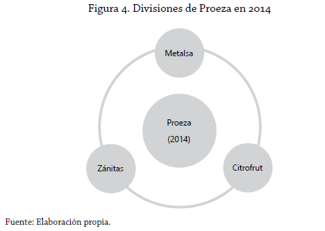 Así, con un grupo que se centra en los intereses económicos sobre los intereses particulares, Grupo Proeza nació bajo un consejo de administración integrado por la familia Zambrano, y se convirtió en un holding que, para 2014, se había consolidado como una estructura multidimensional con tres áreas básicas: Metalsa, la cual tiene medio siglo de experiencia, provee a la industria automotriz de diversas estructuras metálicas y surte a los mercados globales a través de sus plantas de manufactura, oficinas y centros de tecnología; Citrofrut, la cual tiene más de medio siglo de experiencia en el mercado de cítricos y frutos tropicales, ha logrado una completa integración en su cadena de suministros, cuenta con plantas procesadoras en San Luis Potosí, Veracruz, Sinaloa, Sao Paulo y un centro de distribución en Texas; y, Zánitas, la cual está orientada al sector servicios.