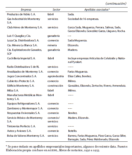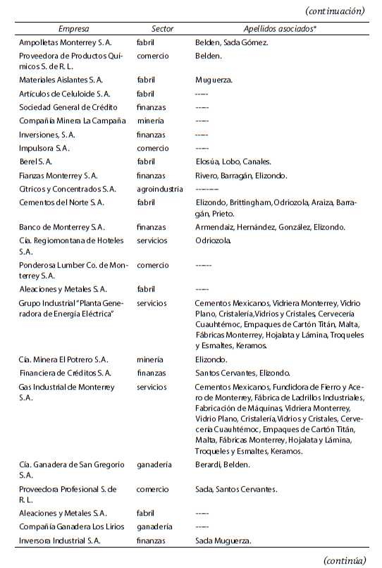 3) La articulación de apellidos con otras familias ha permitido el nacimiento de grupos y empresas guía, las cuales se reproducen y perduran ligadas a las familias empresariales.