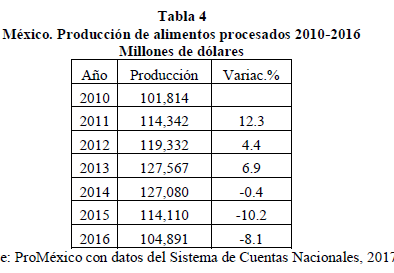Entre 2010 y 2016, las exportaciones de alimentos procesados crecieron 45% (PROMÉXICO, 2017).