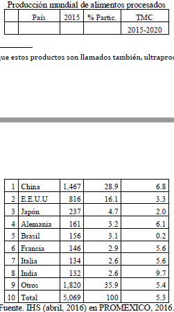 En este artículo se presenta un estudio del crecimiento de la industria de los alimentos procesados, tanto a nivel global, como a nivel continental en América Latina y un acercamiento a nivel nacional en México.