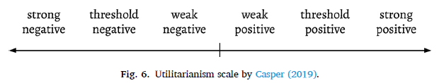 En primer lugar, se encuentra el strong negative utilitarismo, que significa que el utilitarismo se reduce al sufrimiento. Al contrario, el strong positive utilitarismo significa que únicamente existe la felicidad y las oportunidades de incrementarla. También, se puede encontrar al threshold negative utilitarismo, en dónde existe lugar para el sufrimiento que ninguna cantidad de felicidad podría compensar, y al threshold positive utilitarismo, en el que siempre existe lugar para la felicidad que ninguna cantidad de sufrimiento podrá rebasar. Finalmente, se encuentran el weak negative utilitarismo y el weak positive utilitarismo, en donde el primero significa que existe una asimetría entre el sufrimiento y la felicidad en la que el bienestar importa pero es rebasado por el malestar, y viceversa, en donde la felicidad y el sufrimiento son conmensurables, no obstante la felicidad rebasa el malestar.