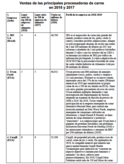 25- En 2017, Cargill comenzó a invertir en Memphis Meats, una empresa emergente de Silicon Valley que desarrolla carne cultivada en laboratorio, y en 2019 la compañía agregó Aleph Farms, con sede en Israel, a su cartera de “carne limpia”; en abril de 2019, Tyson anunció que estaba vendiendo su participación nominal en Beyond Meat, con sede en California, y que comenzaría a vender su propia carne a base de plantas a finales de año.