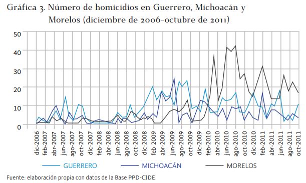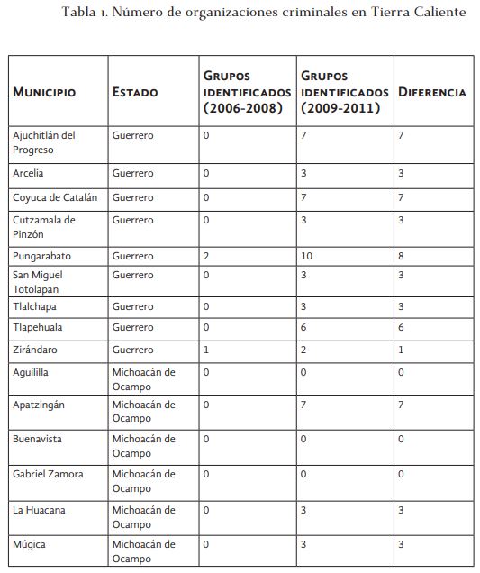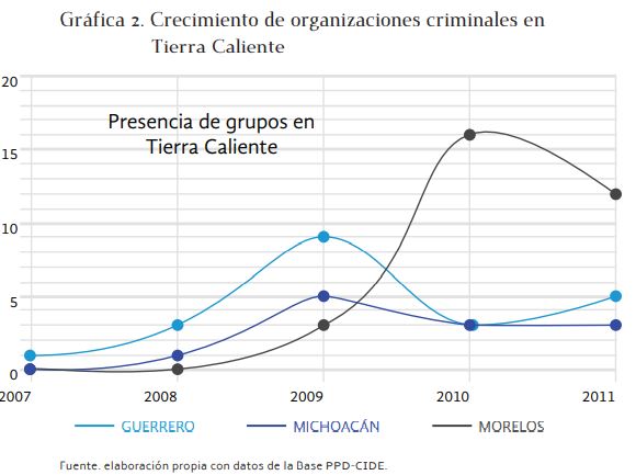 Michoacán, Guerrero y Morelos, no sólo comparten fronteras territoriales sino toda una red criminal que se estructura a partir del negocio del cultivo, producción y tráfico de drogas ilícitas, la cual tiene como pináculo el control de los delitos del fuero común y hasta la captura de los gobiernos municipales.