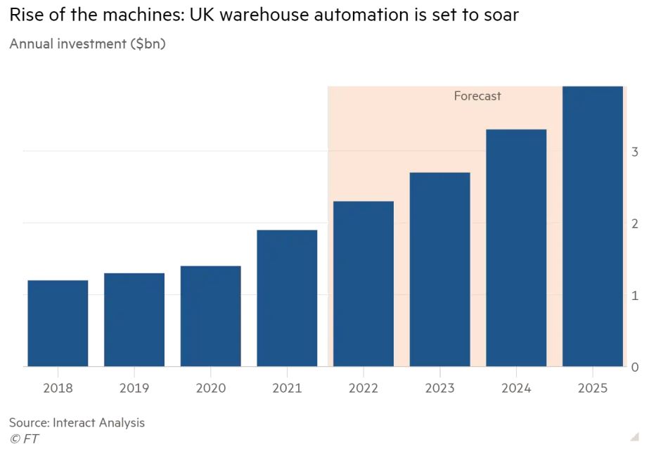 Las grandes empresas de logística y reparto tuvieron planes de inversión a nivel global por 36 mil millones de dólares en 2021, derivado del incremento en el comercio electrónico producto de la pandemia y por la escasez de mano de obra en los puestos de trabajo monótonos.