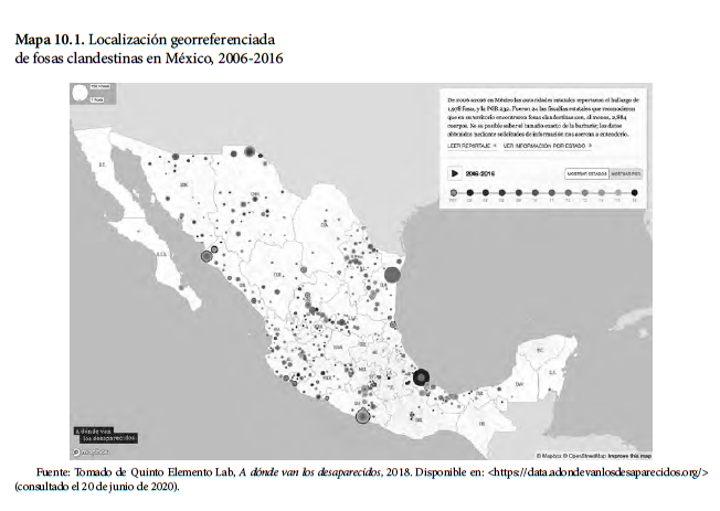 Un ejemplo de lo anterior es que, en México, la mayor acumulación de fosas clandestinas se encuentra en zonas con enormes flujos económicos relacionados con hidrocarburos y minerales (ver mapa 1). Asimismo, son estos espacios los que albergan la mayoría de los conflictos entre empresas mineras y comunidades, así como aquellos sometidos por el crimen organizado.