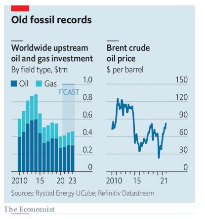 La Agencia Internacional de Energía (IEA por sus siglas en inglés) indicó que el incremento en el precio de los combustibles fósiles puede causar el segundo mayor aumento absoluto en las emisiones de dióxido de carbono de la historia. Para alcanzar una meta de emisiones netas cero para 2050, la IEA indica que no hay necesidad de invertir en nuevos proyectos de petróleo y gas después de 2021.