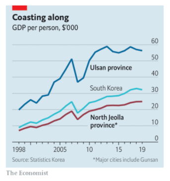 2. La ciudad industrial más importante de Corea del Sur, Ulsan cuenta con un PIB por persona 75% más alto que el promedio nacional, años atrás su PIB por persona era de 100 dólares.