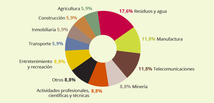 México es el tercer país de América Latina y el Caribe y se encuentra entre los primeros seis a nivel mundial en número de demandas por inversiones extranjeros en tribunales supranacionales (ver dato crucial 5). Algunas de estas denuncias han sido presentadas por inversores con sede en Estados Unidos en virtud del TLCAN y la mayor parte de ellas han sido resueltas y fallado a favor de las empresas, lo que ha provocado que el Estado mexicano destine grandes sumas de dinero como compensación a los inversores (ver dato crucial 6 y 7). Las demandas de arbitraje se ubican en sectores diferentes, como se muestra en el siguiente