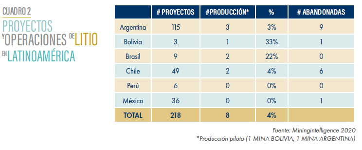 4. De los más de 218 proyectos de litio identificados en América Latina, solo 8 están en explotación.