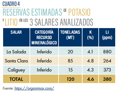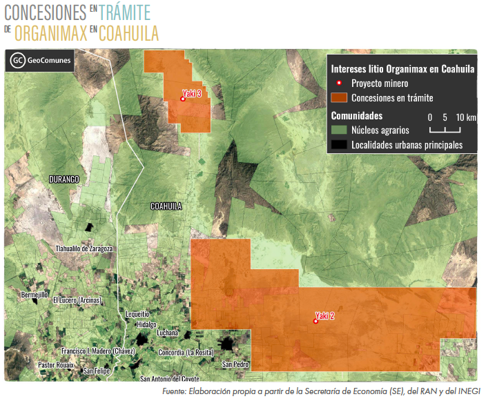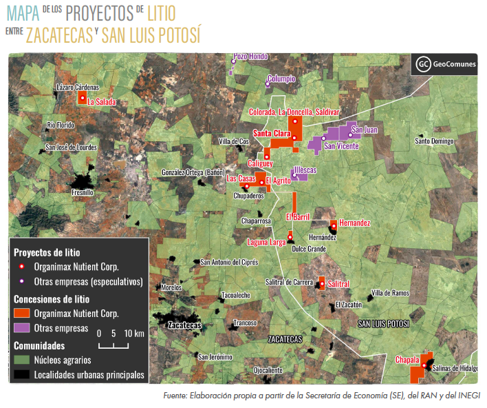 Organimax adquirió 5 concesiones en los límites de Zacatecas y San Luis Potosí, en donde pretende explotar 15 salares, aunque por el momento solo ha analizado tres de ellos. En la misma zona existen 4 concesiones vigentes para la explotación de litio de la empresa australiana Zenith Minerals y dos más de la británica Alien Minerals. Los proyectos de ambas empresas podrían ser especulativos, ya que no cuentan con actividades y no hay mucha información sobre ellos.