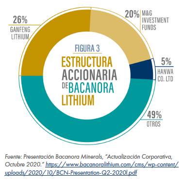 La inversión de Ganfeng también cambió la estructura accionaria de la empresa subsidiaria responsable de las operaciones en Sonora: Sonora Lithium. Ganfeng cuenta con 22.5% de las acciones de esta última, mientras Bacanora Lithium posee 77.5% de ellas. Asimismo, Gangfeng tiene derecho a 50% de la producción de litio extraída de la fase 1 y 75% de la fase 2.