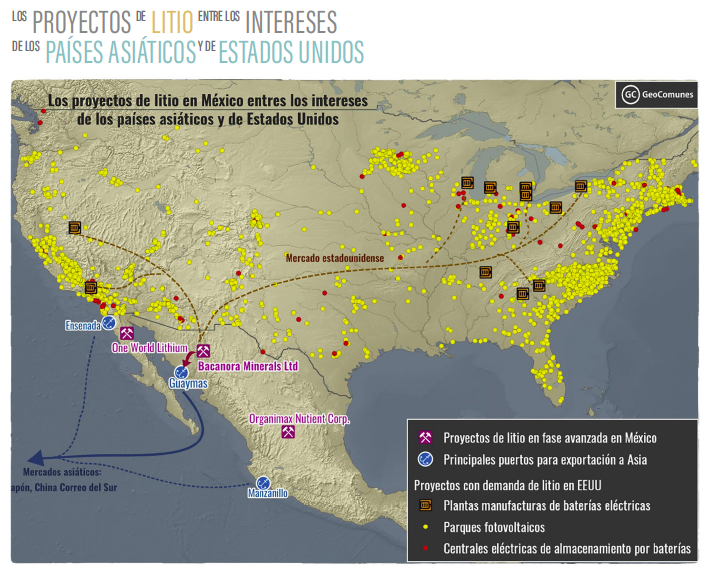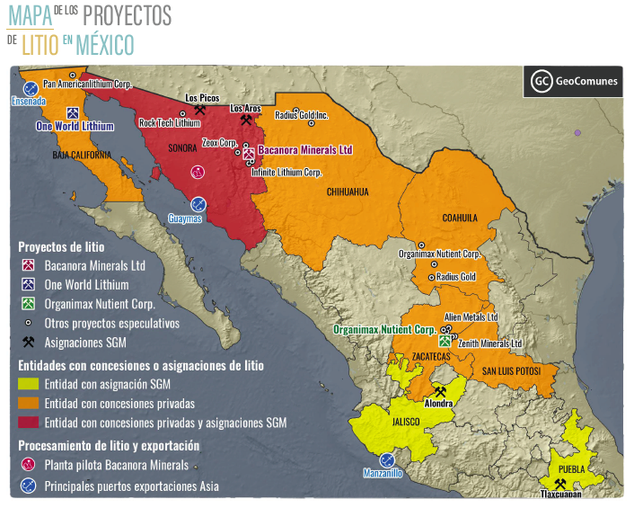 La única información, que por el momento se tiene sobre el litio en México, es que aquel extraído en el proyecto Bacanora se exportará a Japón. Este podrá terminar en manos de Gangfeng (China) y Tesla (EEUU), su socio comercial.