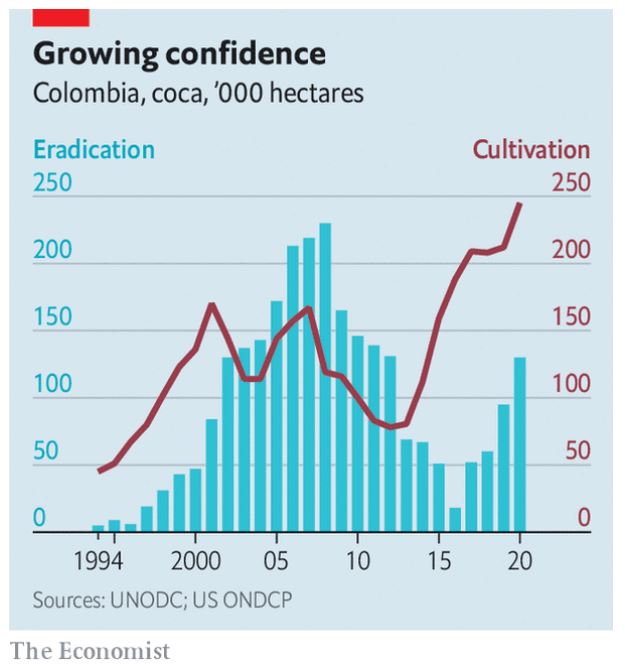 Las prohibiciones a las drogas ha tenido un poco impacto en la erradicación del narcotráfico en la región (ver dato crucial 4 y 5).