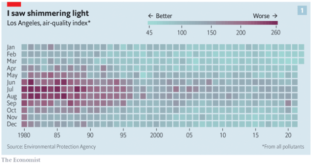 En este sentido, los demás estados puedes decidir si acatar las leyes federales de la Agencia de Protección Ambiental (EPA por sus siglas en inglés) o las de California, 16 estados siguen las normas de California. La determinación del estado gira en torno a dos preocupaciones: la contaminación atmosférica local y la crisis climática global (dato crucial 2). La calidad del aire en Los Ángeles ha mejorado bastante en los últimos 40 años (dato crucial 3), a pesar de que en 2019 Trump revocó la exención de California argumentando que no debía establecer normas para otros estados. La EPA restableció la exención en marzo de 2022.