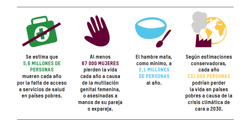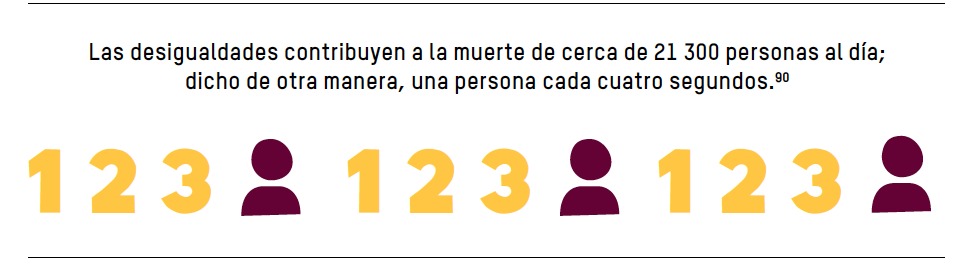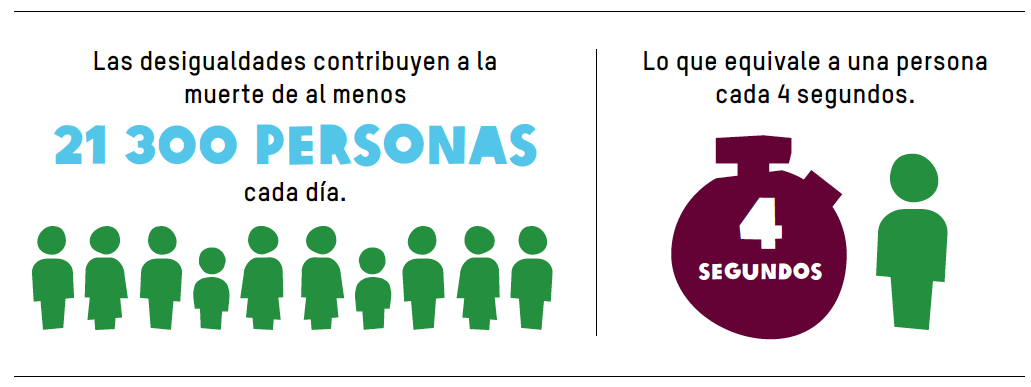 Es posible señalar que las desigualdades contribuyen a la defunción de 21 300 personas al día. Con esa cifra, Oxfam resalta que esas desigualdades contribuyen a la muerte de una persona cada 4 segundos.