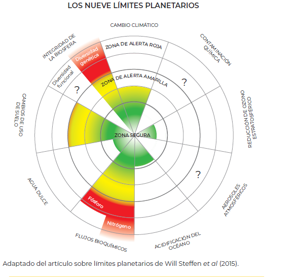 Las emisiones de carbono conducen al calentamiento global, en este sentido, algunos científicos creen que, aunque se cumplieran los objetivos del Acuerdo de París, este escenario es inminente e incluso se desatarán mecanismos de retroalimentación que lo potencien. A pesar de los numerosos desastres y desbalances que ya están ocasionando el cambio climático, no es el único límite planetario que debemos vigilar para mantenernos en un “espacio seguro”, de hecho, son nueve los parámetros cuya alteración podrían situarnos en escenarios de amenaza existencial (dato crucial 2). En este tenor, resulta más adecuado decir que estamos en una “crisis civilizatoria” más que en una crisis climática, pues este concepto plantea una visión integral, sistémica y crítica.