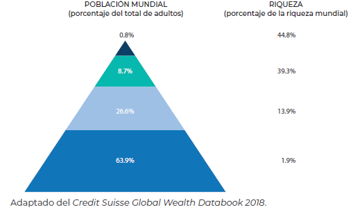 3. Los datos muestran que a nivel mundial la desigualdad económica se ha intensificado: menos de 1% de la población controla casi 50% de la riqueza, y más de 60% sobrevive con menos de 2% de la misma.