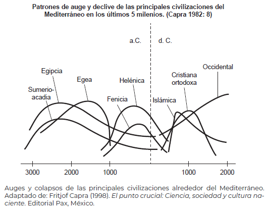 “El enorme ‘éxito’ de las sociedades complejas se explica por un feedback positivo: la acumulación de riqueza implica una centralización del poder que les permite a su vez conquistar nuevos territorios y, por lo tanto, acumular más recursos y más poder” (p. 19). En este sentido, cada que se presente una crisis civilizatoria se buscarán nuevas formas de expansión a través de la tecnología, la ciencia, desarrollos militares, invasiones, nuevas fuentes de energía y transporte, etcétera (dato crucial 5). De esta forma se explica el ciclo de auges y colapsos de las sociedades complejas que han existido en los últimos 6 500 años.