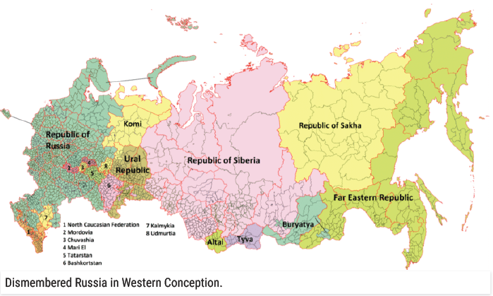 Mapa de Rusia desmantelada según la visión de Estados Unidos