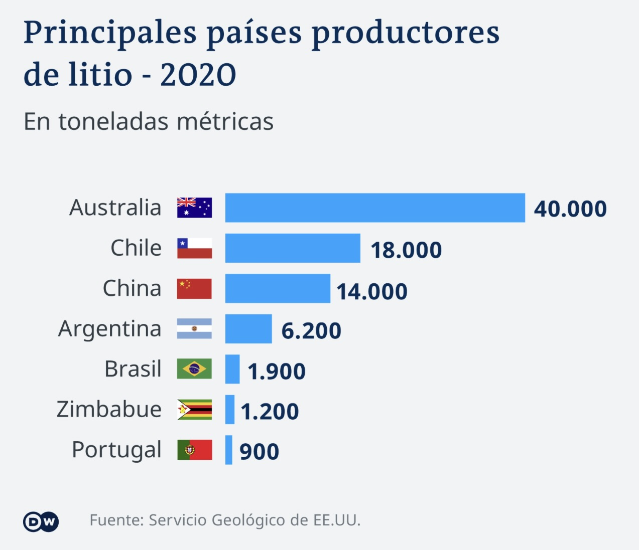 2. En la actualidad, la producción mundial de carbonato o hidróxido de litio es menor a 45 000 toneladas. La Agencia Internacional de la Energía (IEA) estima que esta cantidad se multiplique 40 veces para 2040. Para el caso de la mina francesa en Beauvoir, la extracción es pequeña porque su concentración está entre 0.9% y 1%, motivo por el que se requiere extraer casi 100 toneladas de roca para obtener 1 tonelada de litio.