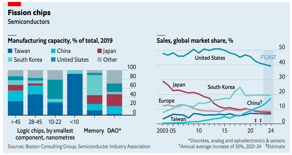 • Taiwán en la producción de chips de gama alta.