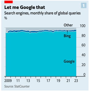 The Economist [2023], "Seeking change. Is Google's 20-year dominance of search in peril?", The Economist, London, 11 de febrero, https://www.economist.com/business/2023/02/08/is-googles-20-year-search-...