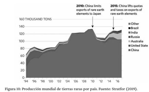 Sin embargo, China posee desarrollo tecnológico y de infraestructura que posibilita la extracción, la mayor reserva en el mundo, además de laxas regularizaciones ambientales, reducidos salarios, bajos costos de extracción con esto no hay manera de evitar que mantenga el control de las tierras raras.
