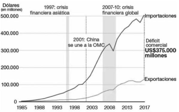1. En 2017 EE.UU registró un déficit comercial de 375 mil millones de dólares.