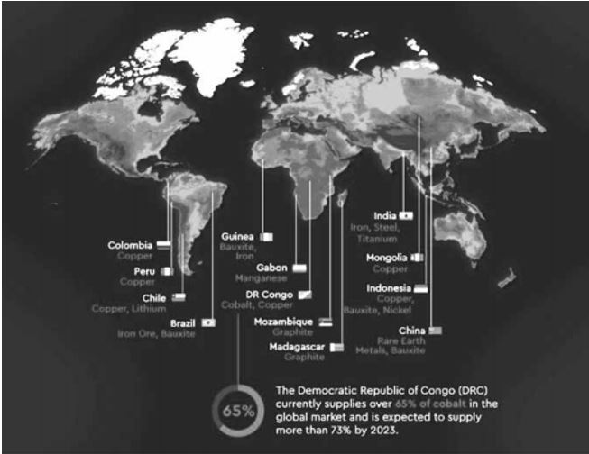 La República del Congo (RDC) posee mayores reservas de cobalto; sin embargo, todos los aspectos mineros en el territorio se asocian a trabajo infantil e impactos ambientales, gracias a la poca legislación que tienen al respecto.