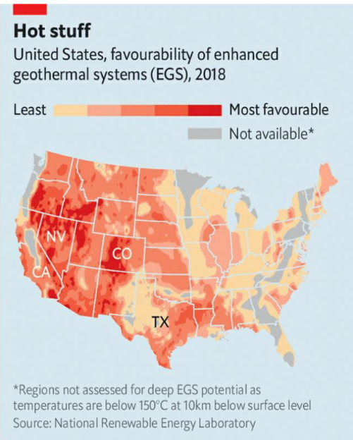 Es por eso que Texas, a pesar de no contar con grandes cantidades de recursos geotérmicos, se ha convertido en la capital de la industria pues facilita la obtención de permisos al contar con los recursos en propiedad privada (dato crucial 4).