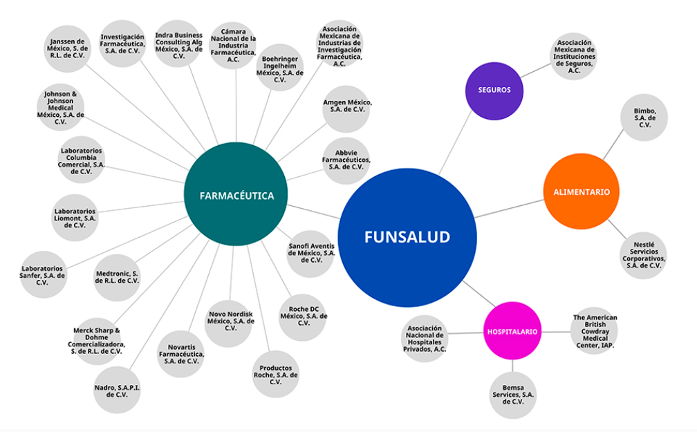 La investigación revela la influencia de grandes empresas privadas en las políticas de salud pública en México a través de la Fundación Mexicana para la Salud (Funsalud). Funsalud, es un think tank creado por 21 empresas privadas nacionales y extranjeras en 1985, cuyo objetivo es “ser un referente técnico-científico en la generación de ideas, reflexiones y fórmulas para elevar el estándar y equidad en salud”.