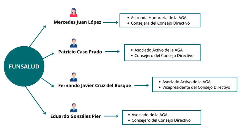 En la actualidad, participan en Fundsalud 61 asociados fundadores -activos y honorarios-, 4 asociaciones y 22 empresas, entre las que destacan grandes corporaciones como Bimbo, Nestlé, Nadro, Sanofi Aventis de México, Novartis Farmacéutica, entre otras. En la Asamblea general de asociados, el órgano de mayor importancia en Fundsalud, tienen participación indirecta otros grandes empresarios como Olegario Vázquez Aldir de Grupo Empresarial Ángeles; Grupo Nacional Provincial con Alejandro Baillères; Grupo Financiero Inbursa con Marco Antonio Slim; y Kimberly-Clark de México con Claudio X. González.