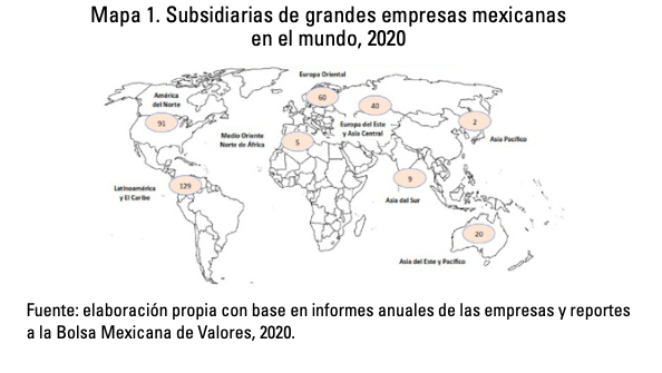 Es cierto que el primer impacto de la crisis financiera de 2008 para la IEDS de EMN mexicanas fue considerable (un derrumbe de cerca de 9 mil millones de dólares), pero no se prolongó ni se intensificó como sí sucedió en las EMN extranjeras con un vínculo financiero tan arraigado con la banca extranjera; un hecho que aprovecharon con cautela las EMN de México más poderosas para fortalecer sus inversiones a través de FA en los países sede de sus empresas y enfocándose en sus principales fortalezas. (dato crucial 10). Dicha estrategia le permitió a las multinacionales mexicanas un incremento en la competitividad y una adopción rápida de nuevas capacidades tecnológicas, no obstante, es importante señalar que, a raíz de la crisis financiera de 2008, las EMN y su esquema de FA han vivido constantes turbulencias —2016 y 2019— a causa de la coyuntura mundial (dato crucial 11); para 2020 las EMN mexicanas tenían mayor presencia en América Latina y Estados Unidos por obvias razones geográficas: