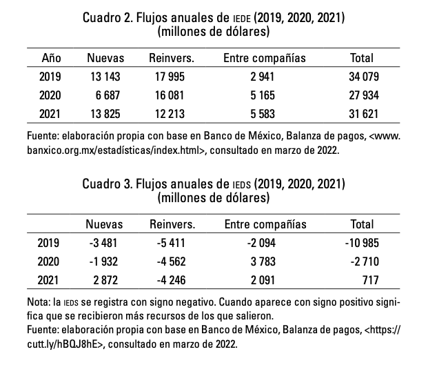 De esta suerte, Basave ofrece un pronóstico de los flujos de IED tratando de explicarlos desde la coyuntura (2019-2021) en base a la información de la tabla: