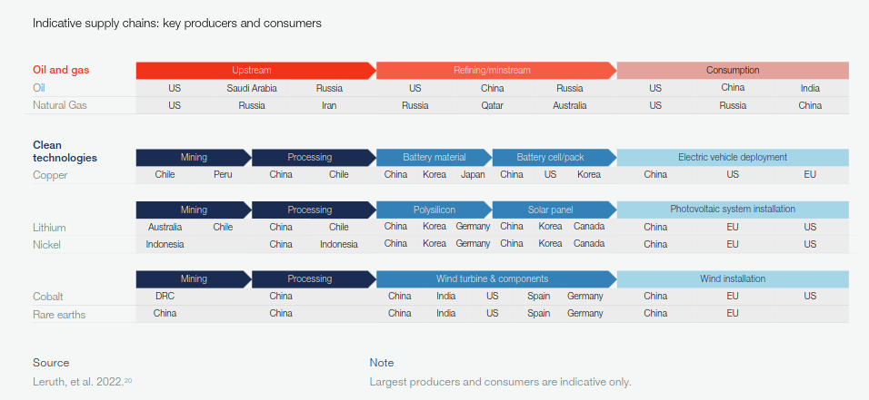 Varios países emergentes y en desarrollo se han beneficiado del creciente interés en los minerales estratégicos; pero deben lidiar con potencias mundiales que ejercen su poder mediante el comercio, la inversión, el control tecnológico, y buscan limitar el avance de sus rivales. Estos procesos junto a la tendencia a la nacionalización impulsaron la reciente creación de la OMEC (2022), una organización de países exportadores de minerales similar a la Organización de Países Exportadores de Petróleo. El auge de los minerales críticos ha permitido el desarrollo de algunos países; pero, para otros ha implicado un crecimiento de la corrupción, la desigualdad, la violencia y las crisis humanitarias.