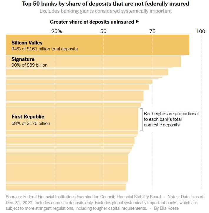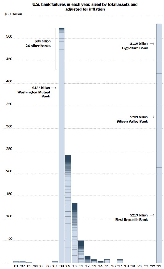 Después del colapso de Silicon Valley Bank y Signature Bank en marzo de 2023, el lunes 1 de mayo de 2023 el gobierno estadounidense embargó y vendió First Republic Bank. Éstos tres bancos contaban con activos superiores al del conjunto de los 25 bancos que quebraron en la crisis financiera de 2008, cuando tras el derrumbe del Washington Mutual, y de los bancos de inversión Lehman Brothers y Bear Stearns, se desencadenaron quiebras en todo el sistema bancario (Dato Crucial 1).